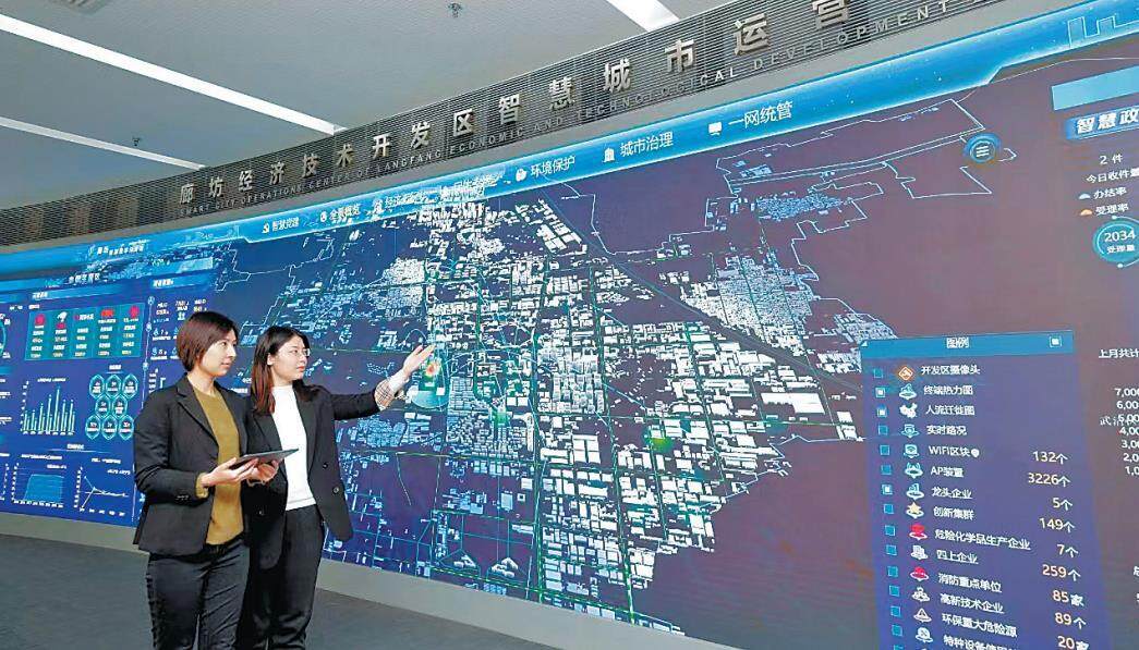 廊坊经济技术开发区智慧城市运营中心,工作人员在进行大数据分析。记者 陈童 摄