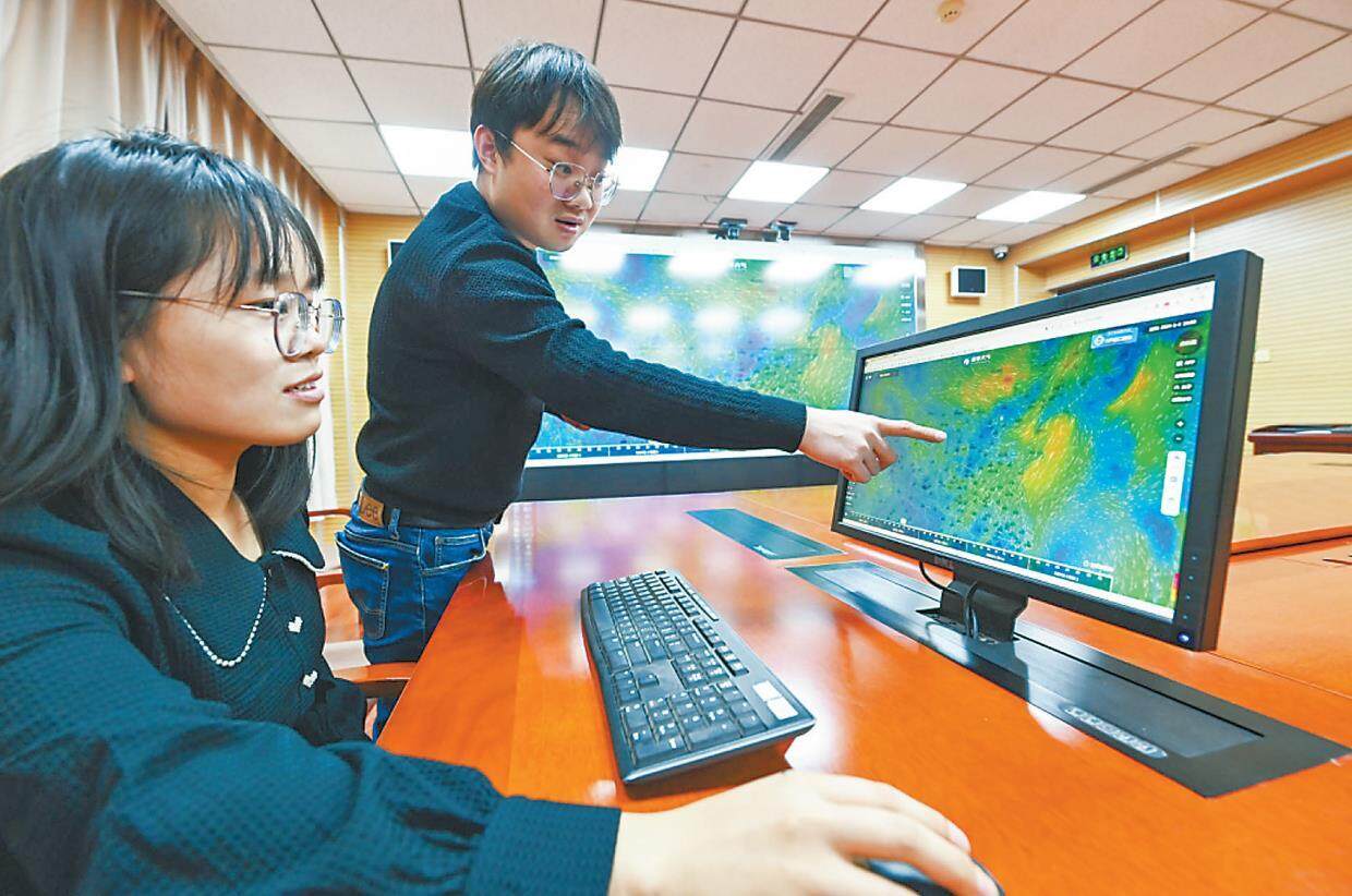 廊坊市生态环境局工作人员通过空气质量实时管控平台和水环境监测预警与评估分析平台进行数据分析。 记者 刘向 摄
