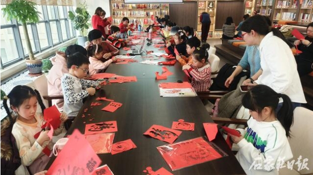 “剪纸有三大技巧,首先动左手不动右手,其次是收剪刀,最后是‘小碎步’……”在活动现场,赵成龙为大家介绍了剪纸的历史和特点,他一边给大家作示范,一边耐心地讲解剪纸技法、手把手传授剪纸技艺,指导读者动手体验。当大家在赵成龙的指导下完成一幅幅剪纸作品时,心中满满的成就感,他们不仅在体验中感受到剪纸的魅力,也从中感受到浓浓的年味。