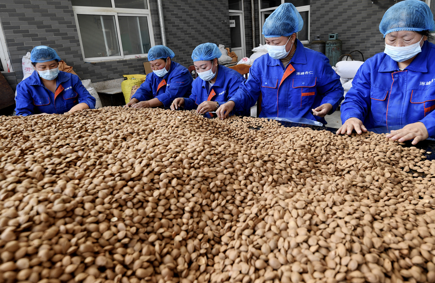 涿鹿县杏仁加工企业工作现场。梁涛摄