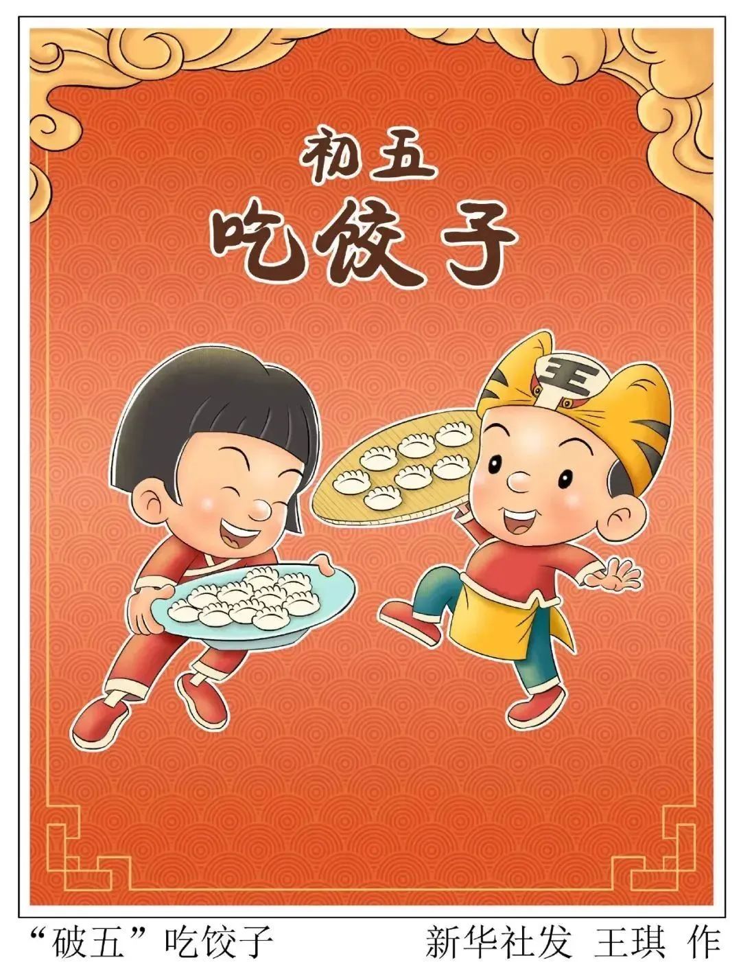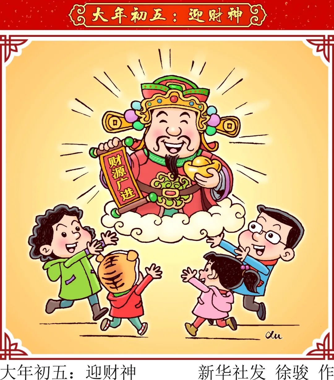初五这一天,商人们都要“开市”。一般正月初一开始,商店都会停业了,直到正月初五才开始营业。初五是财神爷的生日,选择这一天开始营业比较吉利,预示着生意兴隆、财源滚滚。