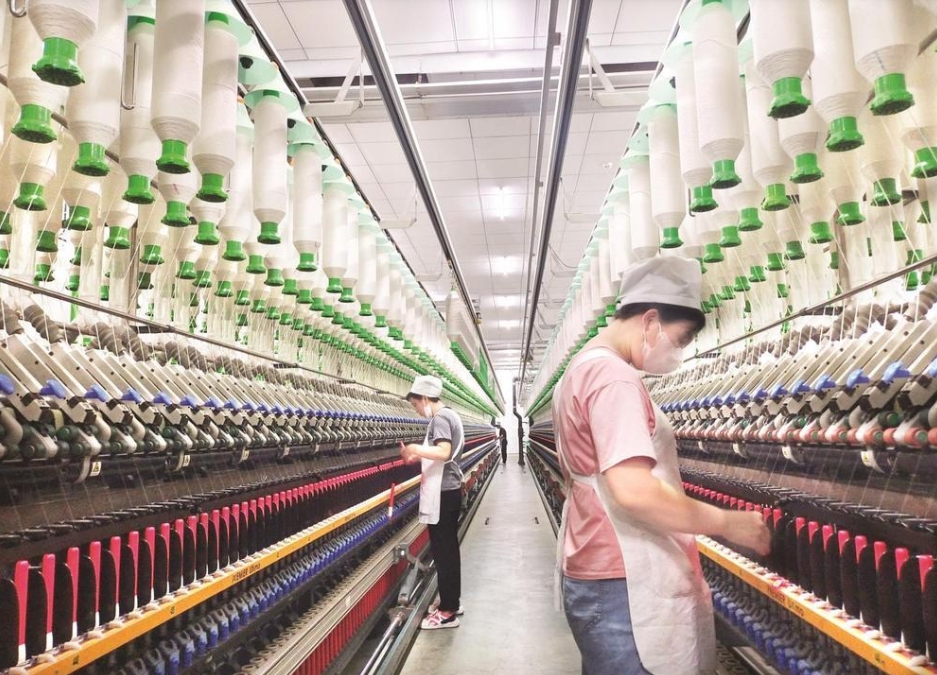 在邱县一家纺织公司,工人正在忙碌。 霍飞飞 摄