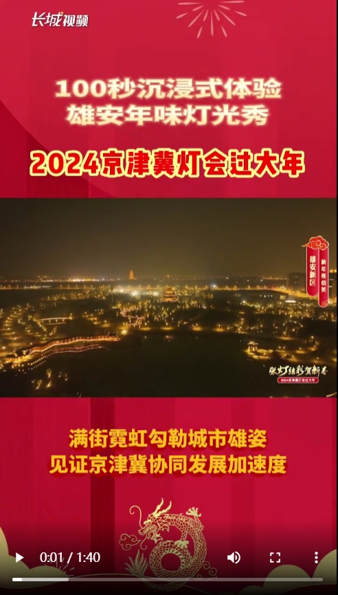 长城网·冀云客户端讯(记者 李梦颖 王艺薇)流光溢彩京津冀,火树银花不夜天。甲辰龙年到来之际,长城新媒体策划推出新春特别节目“张灯结彩贺新春——2024京津冀灯会过大年”,全景呈现京津冀三地一家亲、全民喜联欢的喜庆、热闹场景。