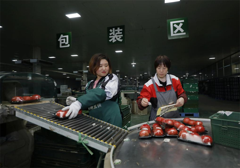 在固安县顺斋瓜菜种植专业合作社的蔬菜加工车间,工人们对净菜进行包装。(固安县委宣传部供图)