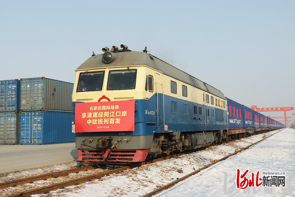 2023年12月28日,京津冀首趟经由同江口岸出境的中欧班列从石家庄国际陆港发车。河北日报通讯员余陈军摄