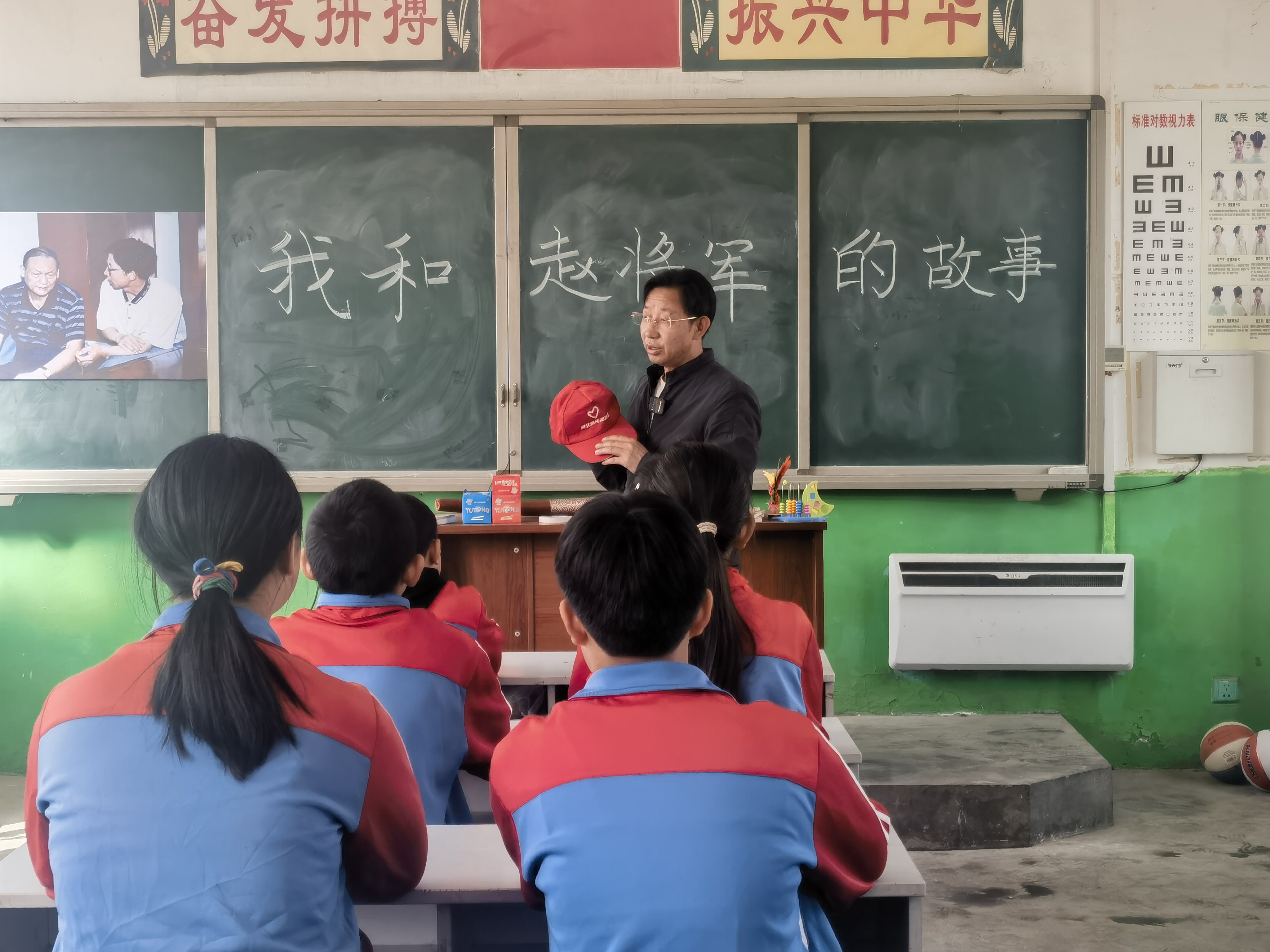 据上庄乡中心小学书记白金介绍,赵将军1999年曾来到学校,当时学校还没有像样的桌椅,院子里都是沙土,一下雨就走不了。赵将军回去后就为学校发起募捐,之后来过三次,还经常通过电话询问学校及学生的情况,指导学校发展。