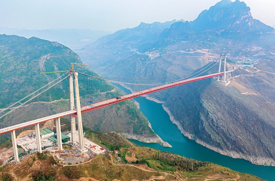 正在建设中的牂牁江大桥。(中铁山桥集团供图)