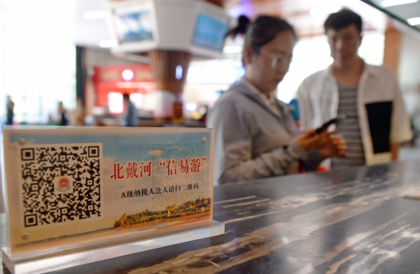 “得知可以自愿申报‘信易游’示范单位之后,我们积极主动申报,也签订了服务承诺书,‘信易游’对我们开展诚信经营是一种监督和鼓励。”北戴河北华园观海酒店前台经理杜晨辉说。