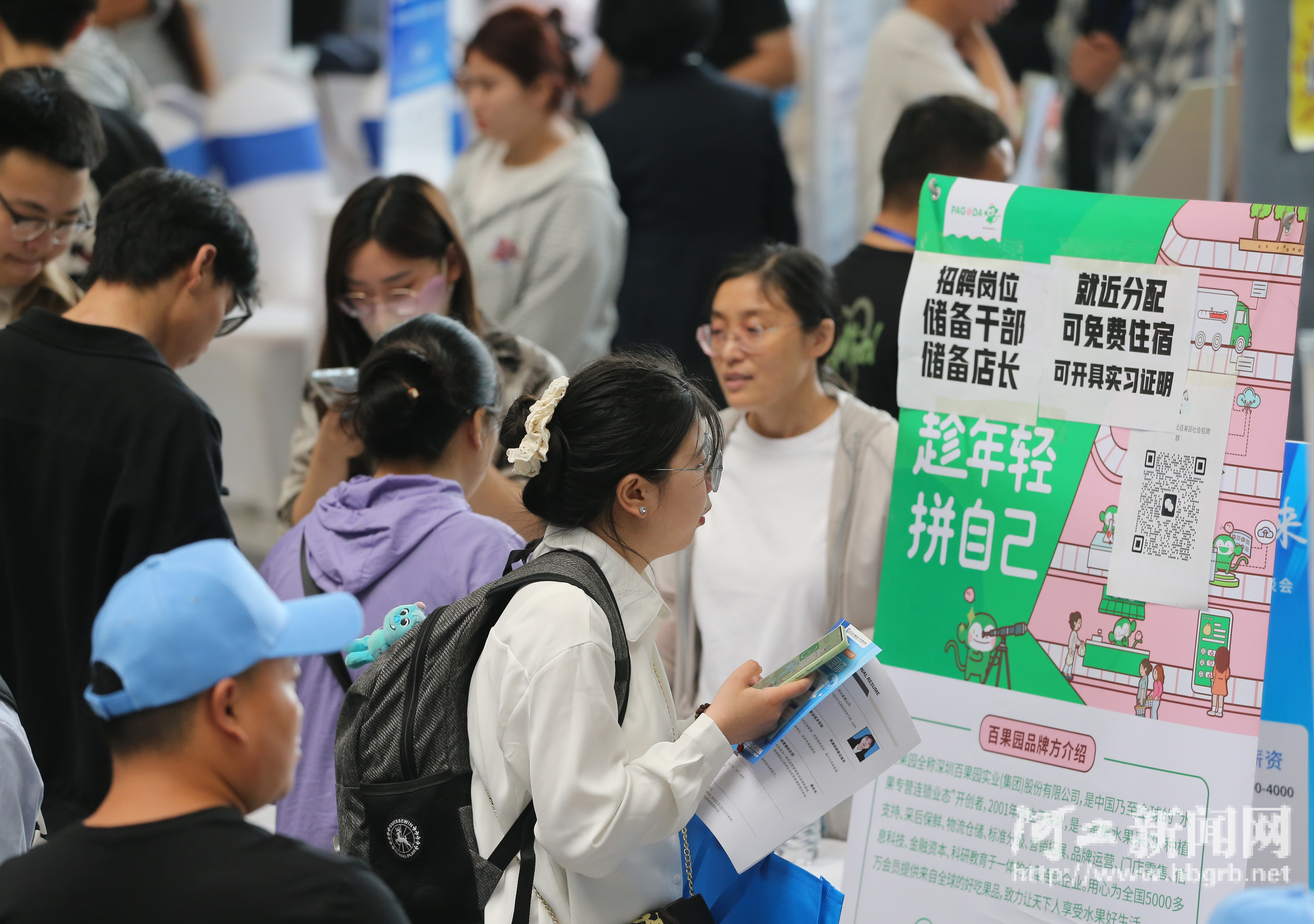 企业招聘海报信息吸引求职者驻足。记者 郑荣玺 林峰摄