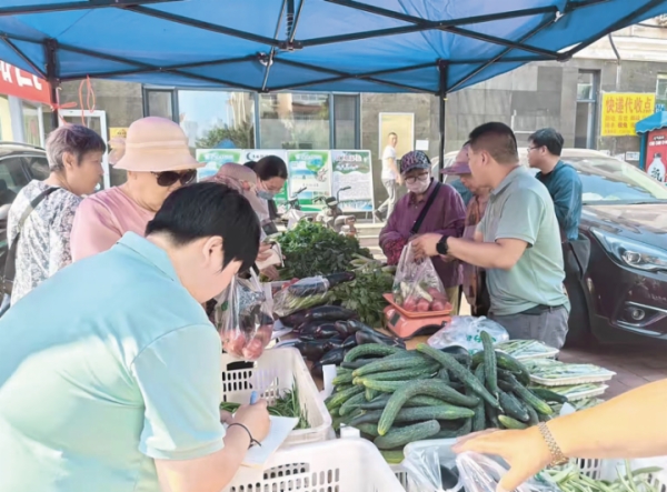 “便民市集”的无公害蔬菜受到居民欢迎。