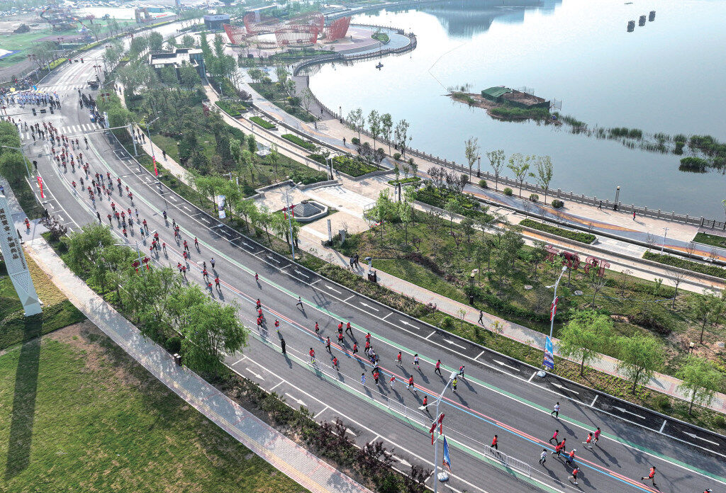 保定马拉松的赛道沿保定市环城水系而设,长度正好是42.195公里,是国内少见的常设型滨河赛道,还是一条涵盖多种体育运动设施、几十处特色场地的“健身长廊”。