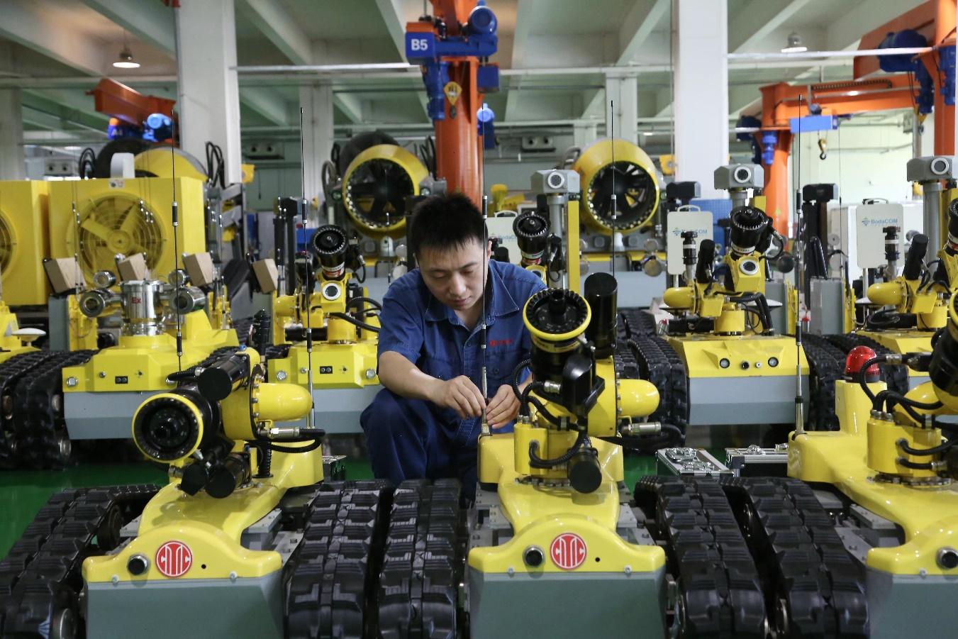 澎湃新闻了解到,近年来,唐山在焊接机器人、特种机器人、服务机器人等领域发展迅猛,应用场景不断拓展。在产业竞争日趋激烈的当下,唐山高新区更一举成为国内首个以机器人产业命名的特色基地和知名品牌创建示范区,这也是河北省第一个机器人专业创新创业平台,集聚了150余家机器人企业。其中,焊接机器人、消防特种机器人和轨道交通机车检修机器人市场占有率均占全国第一。