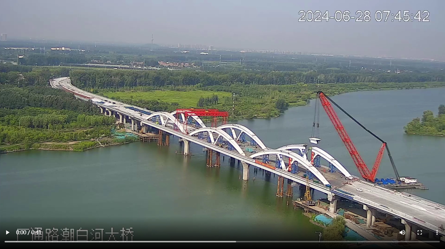 长城网·冀云客户端讯(记者 张伟 王笛 祝雪娟)6月28日10时18分,厂通路潮白河大桥最后一个拱肋成功合龙,标志着全桥主体结构全面完成,正式进入桥面系施工阶段。目前,项目主体工程已完成90%,预计今年9月具备通车条件。