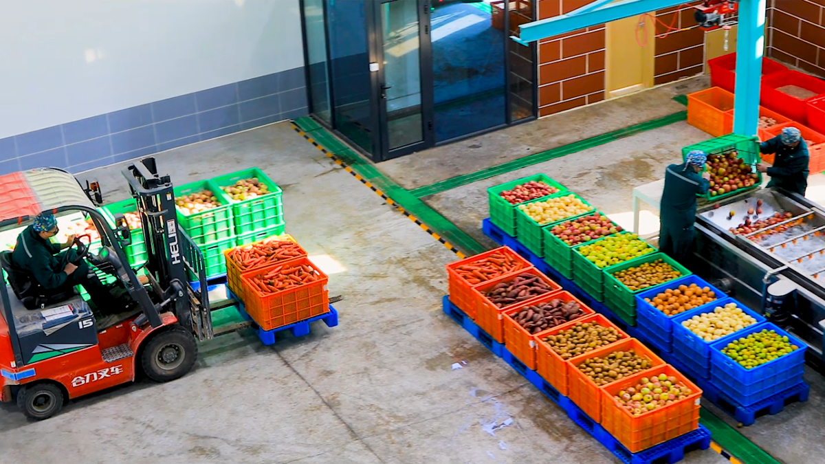 在安平县一家农业企业内,工人在清洗果蔬。安平县供图
