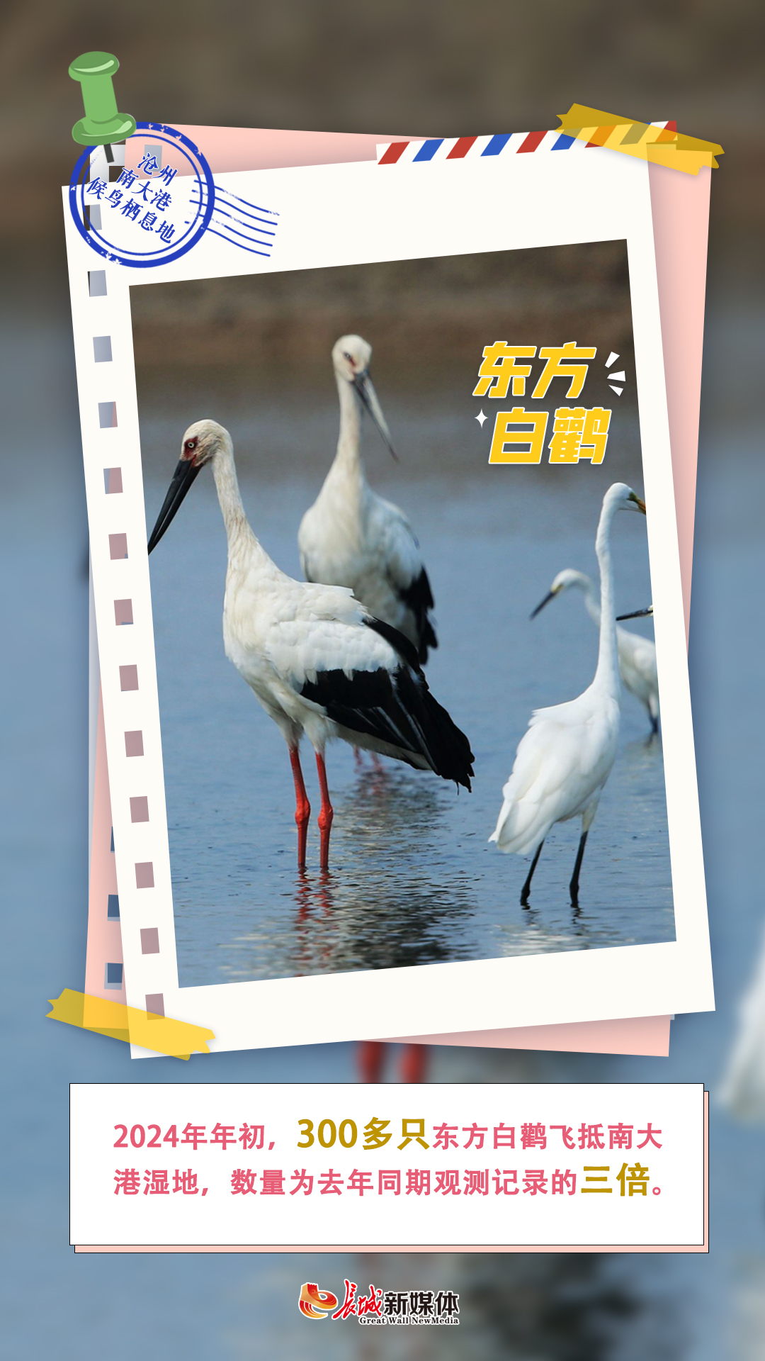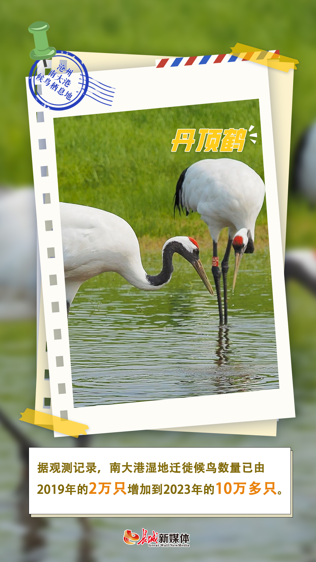 据观测记录,南大港湿地迁徙候鸟数量已由2019年的2万只增加到2023年的10万多只。