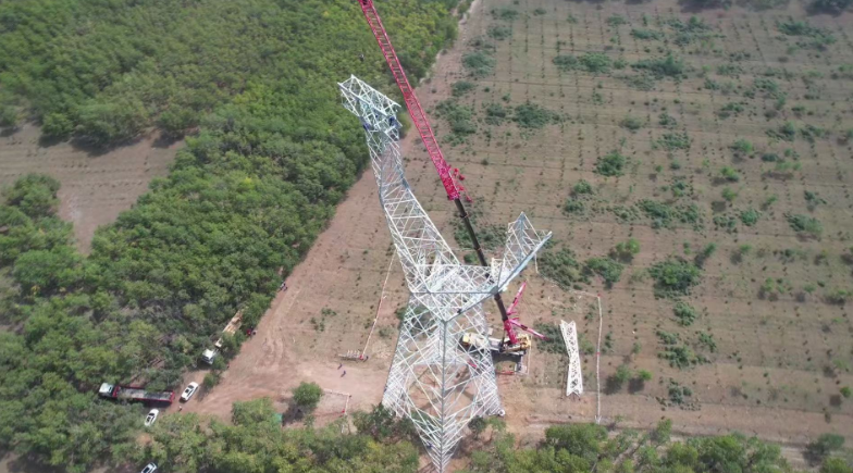 在建设过程中,聚焦“全过程风险压降”,准确识别风险作业,进一步优化设计、施工方案。在基础阶段策划使用旋挖钻机代替人工挖孔,组塔阶段使用流动式起重机组立铁塔,架线阶段使用可视化牵张设备,并全面使用装配式跳线施工工法,使本工程机械化率达到100%。