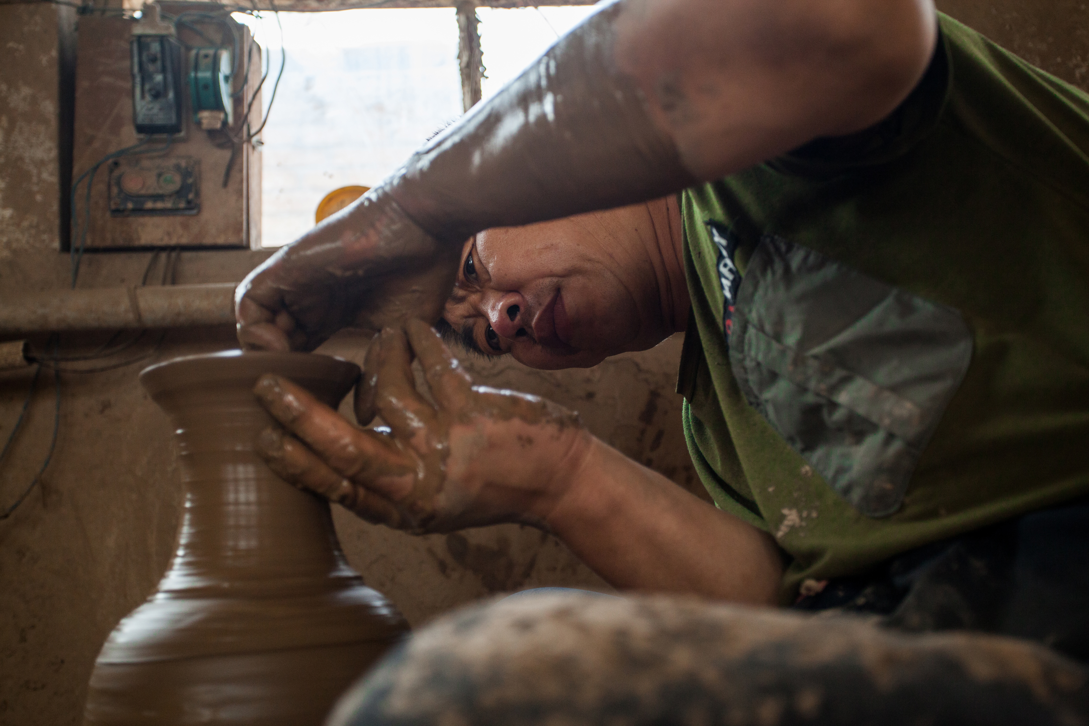 工艺师进行雄州黑陶制作拉坯成型。雄县县委宣传部供图