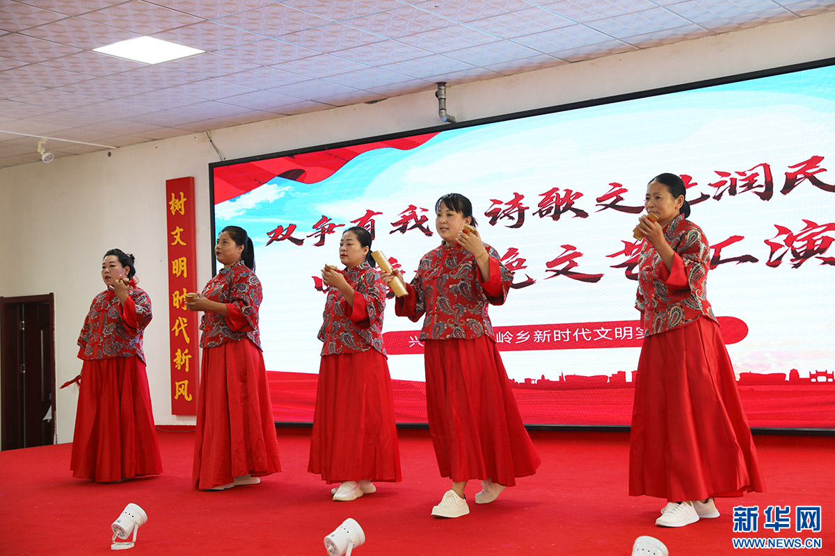 阵阵快板声从诗上庄村新时代文明实践站礼堂传来,原来是村民们在排练节目。快板、舞蹈、歌曲、诗朗诵……每个人都在舞台上尽情展现自己。