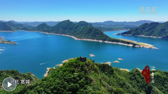 7月13日,在潘家口水库拍摄的露出水面的长城(无人机照片)。新华社资料片