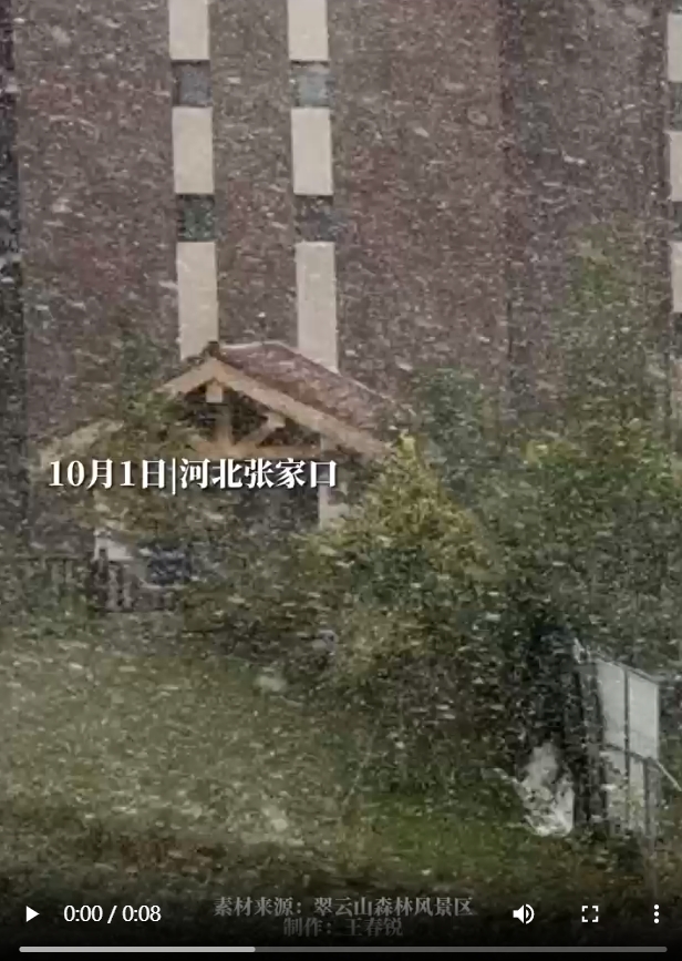 河青新闻网讯10月1日,国庆节假期第一天,河北张家口下雪了!雪中的翠云山森林风景区银装素裹,宛若仙境。(记者王春锐 供图:翠云山森林风景区)