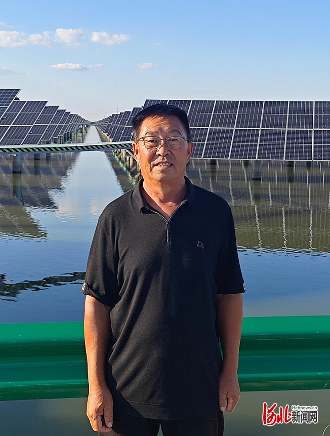 我是村里第一个在南大港光伏电站二期工作的村民,这是黄骅市第一个渔光互补项目。渔光互补可以水上发电,水下养殖,显著提高了经济效益。