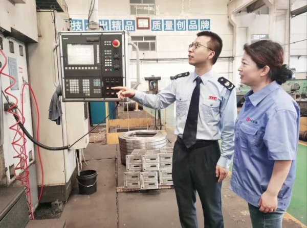 国家税务总局秦皇岛经济技术开发区税务局税务人员到装备制造企业宣传税费政策。通讯员 刘革 摄