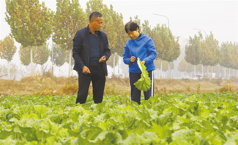 今年秋季,东冯村种了1000余亩大白菜,预计能收获1000万斤,大白菜收购价从去年的每斤0.17元上涨到了今年的每斤0.3至0.4元。粗略计算,全村大白菜可收入三四百万元,既能丰富群众的“菜篮子”,又能丰盈村民的“钱袋子”。