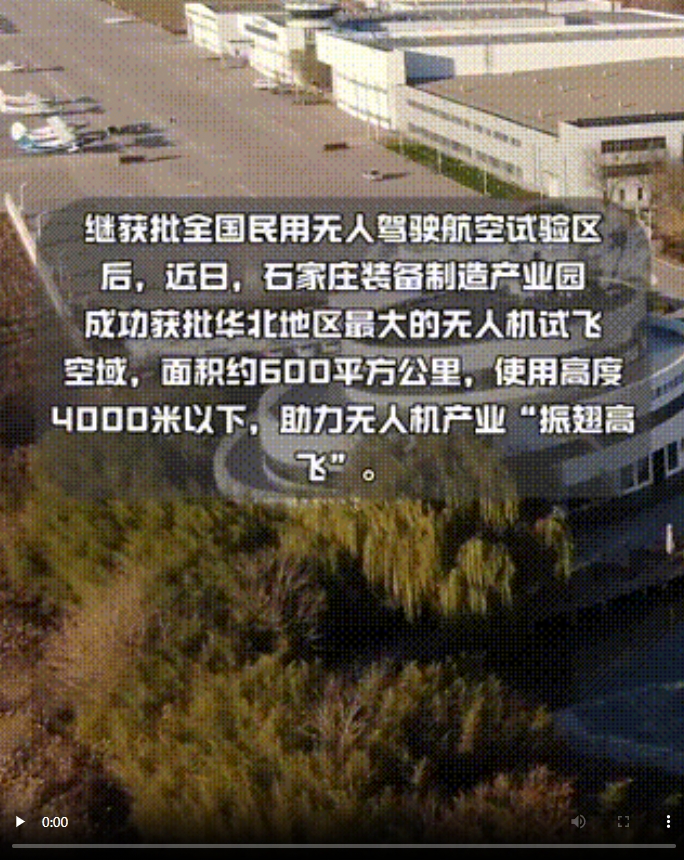 继获批全国民用无人驾驶航空试验区后,近日,石家庄装备制造产业园成功获批华北地区最大的无人机试飞空域,面积约600平方公里,使用高度4000米以下,助力无人机产业振翅高飞。