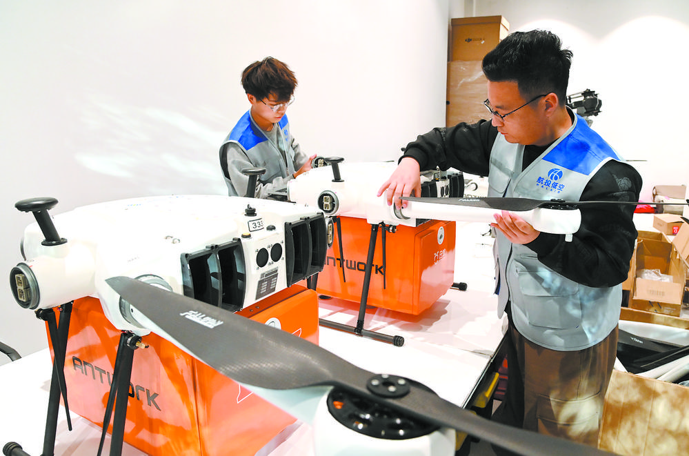 河北航投低空产业发展有限公司的技术人员在组装无人机。