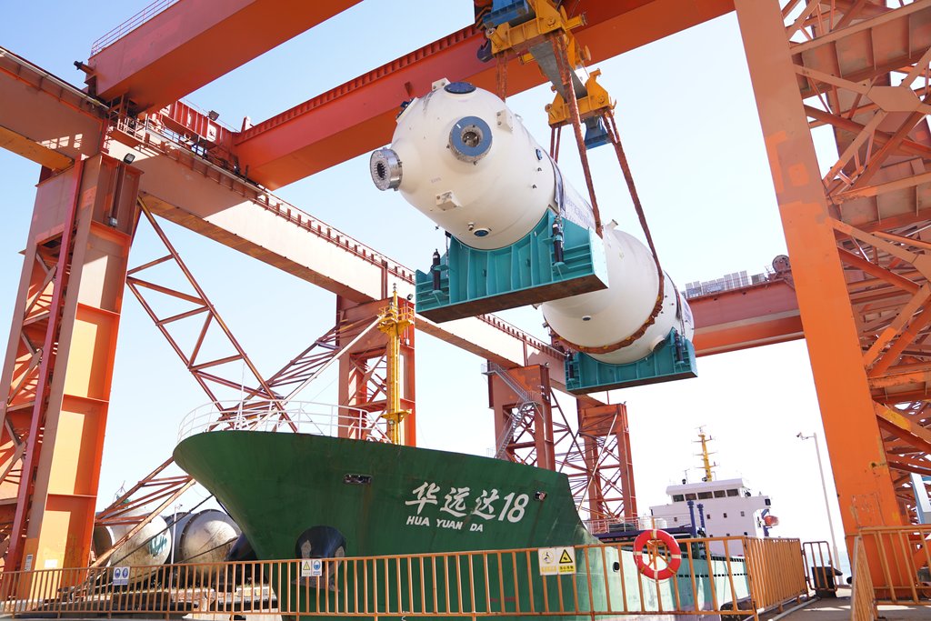 10月19日,哈电集团(秦皇岛)重型装备有限公司生产的一台“华龙一号”核电机组蒸汽发生器装船发运。王继军摄