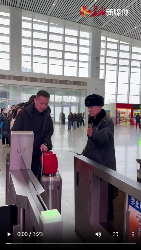 随后,他便开始了一天的巡检工作,从安检口到候车厅,从站台边缘到消防设施,他的脚步几乎遍布车站的每一个角落。“春运期间客流量大,设备安全、旅客服务容不得半点马虎。”他一边仔细检查站内的消防设施,一边向记者介绍。
