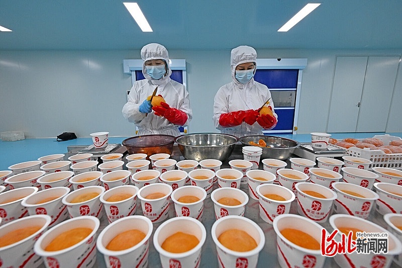 4月25日,保定沃隆农业发展有限公司,工人在冰柿加工车间生产冰柿产品。 河北日报记者 张昊摄