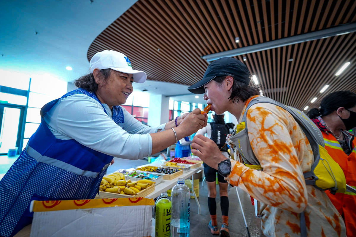 在2025崇礼168超级越野赛中,工作人员“投喂”选手。