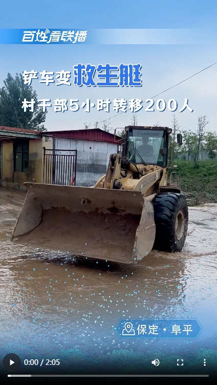 看到有村民被困,方太口村党支部书记李风国毫不犹豫地跳下铲车,趟着洪水奋力靠近,一把抱起老人,转身稳稳放进铲车铲斗里。接下来这一路,李风国等人又救下两位出门避险的村民,把村民安全护送到地势较高的村委会大院。