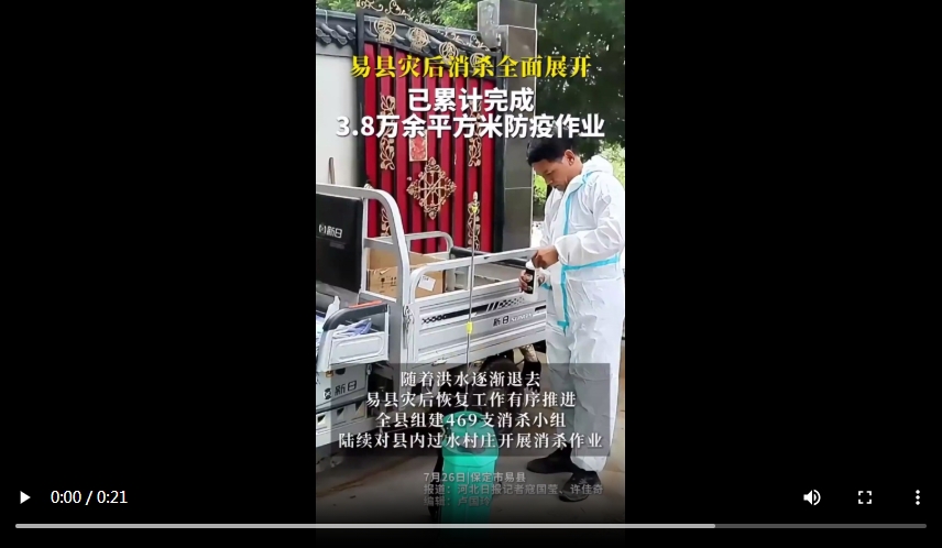 微视频|易县灾后消杀全面展开,已累计完成3.8万余平方米防疫作业