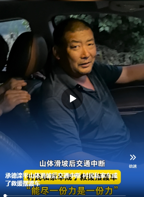 承德滦平山体滑坡后交通中断 村民私家车成了救援摆渡车
