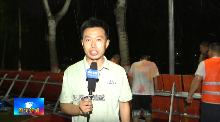 记者何浩诚:我现在是在三河市泃河南岸,此刻能够看到河流流水速度比较快,并且河水还在持续增加。现在我们工作人员正在持续对防洪的设施进行加固,确保河堤安全。