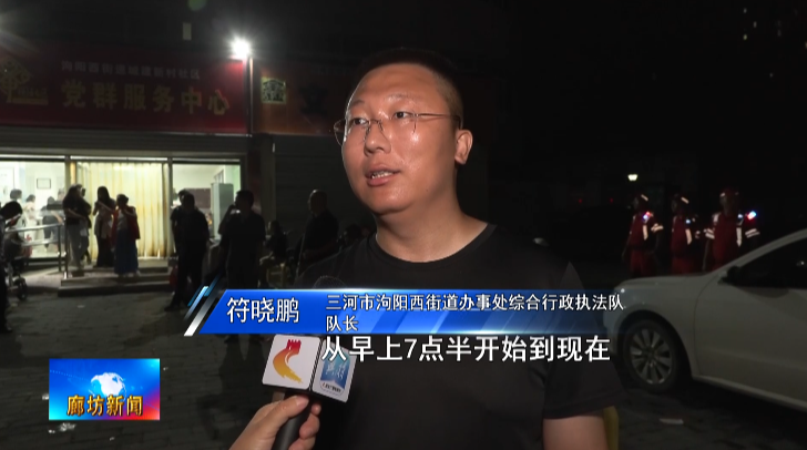 三河市应急管理局副局长、三河市防汛抗旱指挥部办公室副主任杨树勋:我们当前主要采取措施,第一个在我们已经抢筑完子堤,加固了我们的泃河堤防基础上,我们还要加强巡堤查险,巡堤查险工作我们以前按照落实我们三河市的巡堤查险方案,都在分工进行,同时我们后面当前重点工作是对于转移了的群众,特别是集中安置的群众,还要做好相关保障工作。