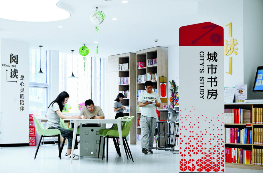 市民在石家庄市裕华区智汇城社区党群服务中心·智汇城城市书房中静心阅读喜爱的书籍。