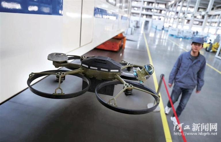 3月6日,在唐山百川集团机器人共享制造工厂内,飞行巡检具身智能体正在模拟巡检列车。该机器人只需要得到巡检指令,就会按照预定轨迹自主进行巡检作业。