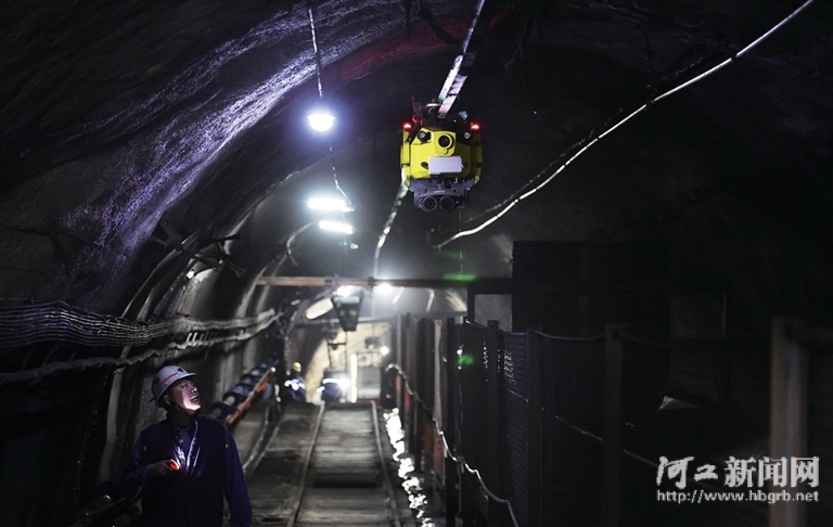 12月11日,在开滦集团东欢坨矿业分公司矿井巷道内,技术人员查看矿用巡检机器人的运行状态。该机器人除了实时传输巡检影像外,还能对现场异常声响发出警报,并对有毒危险气体进行检测分析。