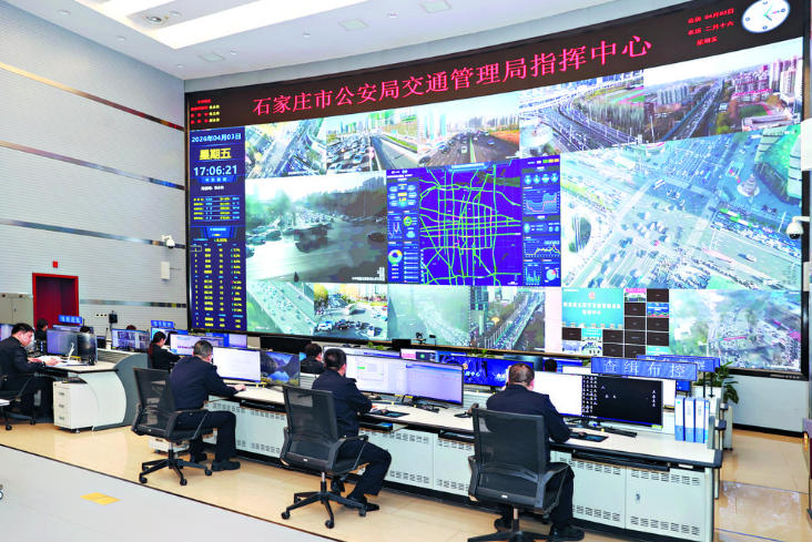在石家庄市公安局交通管理局指挥中心,值班警员依托“智慧交管大脑”,全力保障城市交通有序运行。