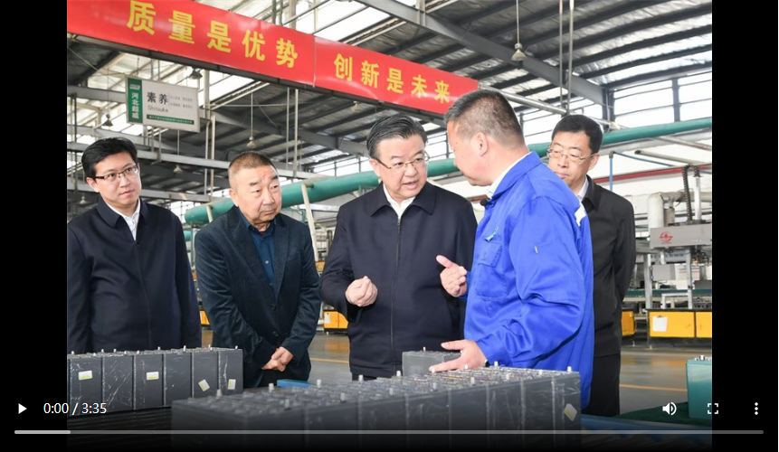 3月20日,省委书记、省人大常委会主任倪岳峰在邢台市新河县超威电源有限公司调研。 河北日报记者赵海江摄