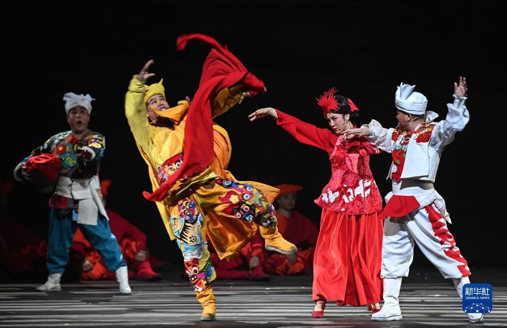 近日在首届中国非物质文化遗产保护年会展演活动上拍摄的陕北秧歌剧《米脂婆姨绥德汉》演出现场。