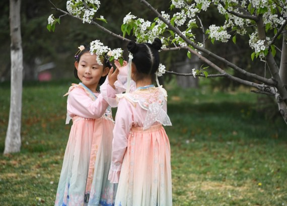 4月5日,小朋友在北京世界花卉大观园游览。当日是清明节,不少游客来到北京世界花卉大观园踏青游玩,感受春天的美好。新华社发(记者任超摄)