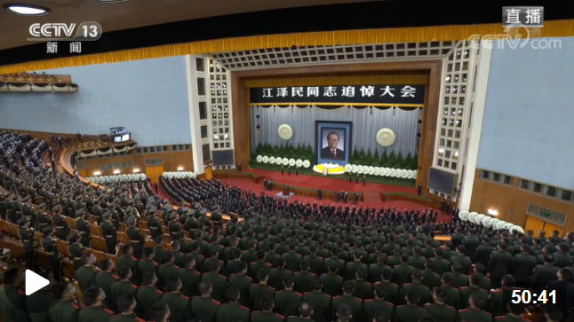 12月6日上午10时,党中央、全国人大常委会、国务院、全国政协、中央军委在北京人民大会堂隆重举行江泽民同志追悼大会。